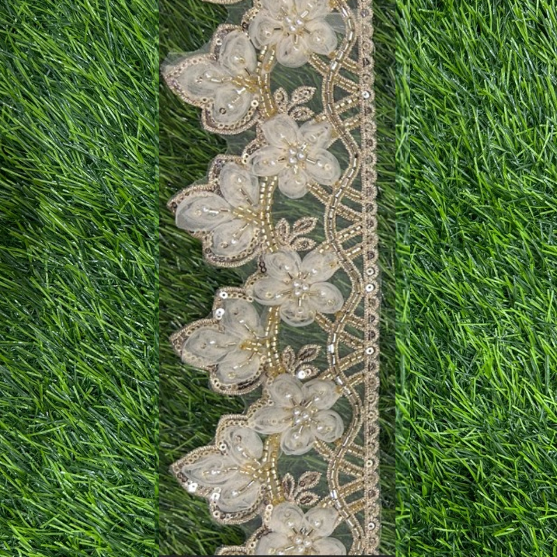 Cutwork Floral Lace with Cutdana & Moti Work